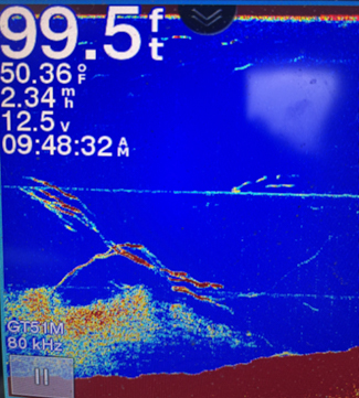 Does your favorite angler own a boat? Take advantage of the all the great advances in technology. Holly and Mike, two biologists from the Lower Cook Inlet ADF&G office suggest getting ready for open water season with an upgrade to boat electronics, saying “the technology for fish finders and chart plotters have really improved substantially in recent years. Below is a photo of fish finder with coho salmon and a school of baitfish which resulted in more salmon in the boat!”