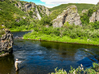The Delta River is a clear stream rarely prone to high muddy water due to the buffering of the large Tangle Lakes system so you can count on great fishing for grayling for 10 miles between the waterfalls and the mouth of the Eureka Creek tributary which is the first of several glacial tributaries to render the Delta River glacially turbid for the remainder of its course to the Tanana River. The only problem with fishing for a while anywhere the next 10 miles of river is that the grayling are so numerous that you may remain in one place too long and leave yourself little time to find and set up nice camp for the night. The population of Arctic grayling in this stretch of river was estimated to be just over 23,000 grayling larger than 12 inches. So, after you have a caught a few at the put-in, it may be time to move down river closer to camp spots. There are no designated camp spots, but there are existing campsites that apparent as you float by. Pick one you like, and keep you impacts to the area minimal (please see Delta Wild and Scenic River information provided by the USBLM for information on best camping and floating practices for this popular area). Although numerous recreational floaters and anglers enjoy this trip, the level of harvest is low relative to abundance of grayling in the river, and accordingly the regulations for Arctic grayling in the Delta River drainage are liberal. The regulations are a daily bag and possession limit of 5 Arctic grayling of any size year-round. Take advantage of the situation and enjoy a meal of grayling while camping along the banks of this beautiful river.