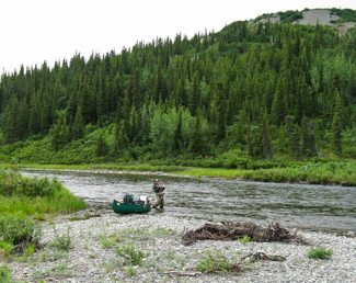 Now for the final stage of the float. Depending on where you chose to camp, you may still have plenty of fishing to enjoy on your way downriver until Eureka Creek. Eureka Creek is a glacial tributary that clouds the clear Delta River for the remainder of the trip which effectively ends fishing for sight feeding Arctic grayling. This portion of the float has a bit steeper gradient and consequently it is slightly more swift. The float quickly winds by interesting scenery and rock formations including a coal seam exposed on a small cliff face. The river also becomes more braided as you proceed downstream but sticking to the larger channels easily floats you to the take-out. Two streams with large alluvial fans meet at the take-out which contains the delta river to a single channel. The float is complete and all that remains is a return trip to Tangle Lakes to grab your other vehicle at the put-in.