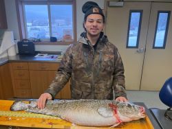 And those fish were very cooperative on Saturday. Most people caught at least one fish while some caught their limit of 10. Most of the fish caught were landlocked king salmon, with a few occasional rainbow trout being caught. All fish were caught right in front of the boat launch in the commonly fished area of the lake.