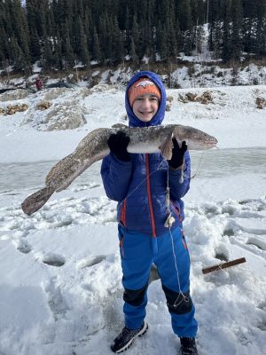 Six-year-old Eli Hough pulled up a 34 ½-inch burbot from Lake Louise on Tuesday, March 11. The fish weighed 11 pounds, 2 ounces. The minimum weight for a trophy burbot is 8 pounds. Hough was on a guided trip with his parents, Remy and Greg, when he hooked the fish.