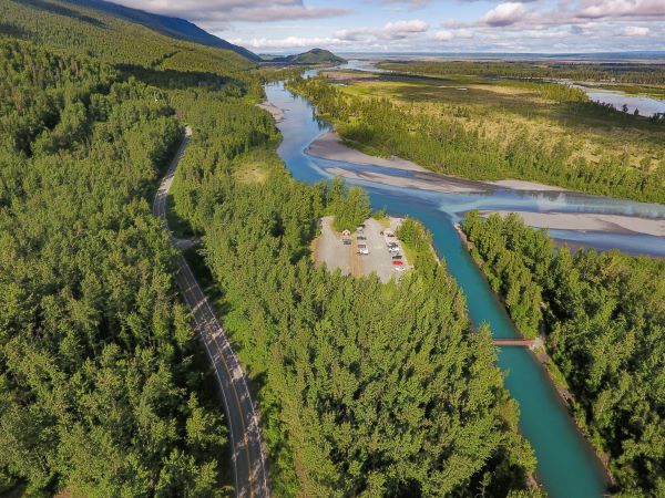 The Eklutna Tailrace now includes a hardened parking lot, wheelchair-accessible paved trails, gravel walking trails, a pedestrian bridge, fish cleaning table, CXT vault latrines, bear resistant trash cans and refuse receptacles. The new entrance road and parking layout has provided safer access, better traffic flow, and increased parking capacity. The open-site design and improved access have enabled law enforcement agencies to easily patrol the area. The trails, bridge, and fishing pads provide easy, barrier free access to angling opportunities on both sides of the tailrace and the facility amenities provide easier site maintenance.
