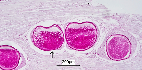 Kuchta, R., M. Oros, J.A. Ferguson, and T. Scholz. 2017. Diphyllobothrium nihonkaiense tapeworm larvae in salmon from North America. Emerging Infectious Diseases. 23(2), 351-352. https://doi.org/10.3201/eid2302.161026 ![]()