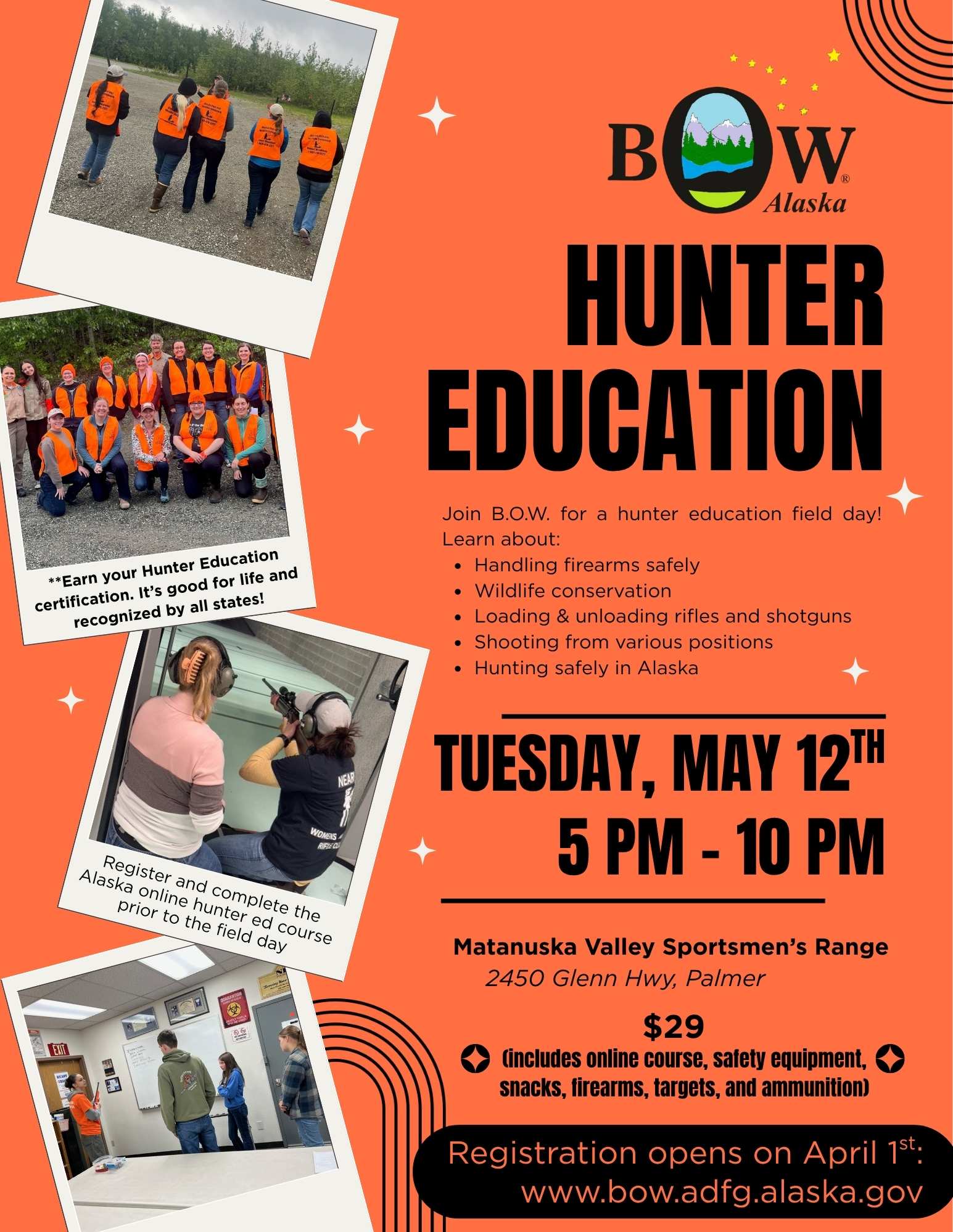 Location and Date: Matanuska Valley Sportsman's Range-Palmer, Tuesday, May 12 from 5:00pm-10:00pm