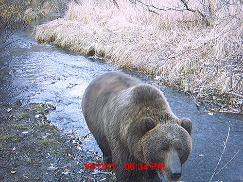 Robin Overall of Kodiak places her trail cameras on established bear trails, in view of rub trees, and near streams. She provided an amazing assortment of images featuring the famed Kodiak brown bears.