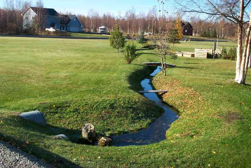 Comments: Dwnstrm channelized thru yard, lawn, down to waterline; Left Culv larger of 2 is overlflow trickling; No real channel below-flows thru lawn into main channel;land owner complains of icing/glaciering