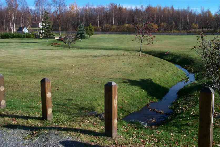 Comments: Traps set at sites upstream and downstream of this site; Stream channelized thru yard upstream & dwnstrm; lawn groomed down to waterline;steam pipe thaw system in stream from 90' upstream to 150' dwnstream
