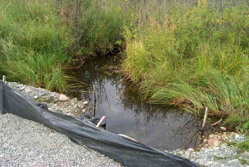 Comments: Apparent blockage approximately 50% of culvert area about 10 ft inside. New culvert extension on lower end -- part of paving project. Perched above streambed. Check for permit issuance.