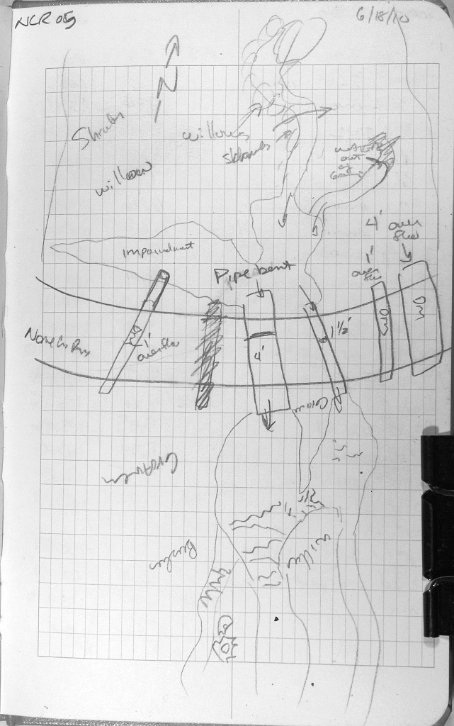 Comments: Set in pool upstream from pipe inlets. No fish caught or seen.