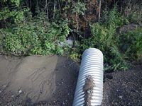 Comments: The channel is almost nonexistent because of recent fire activity. There is a jump barrier immediately upstream of the inlet. The outlet is totally submerged. This channel will likely look very different in a year due to erosion/channel cutting.