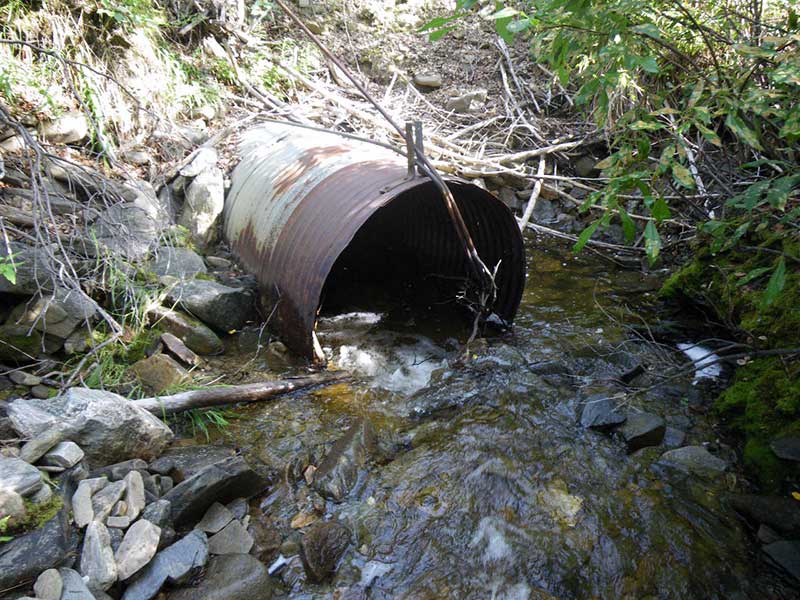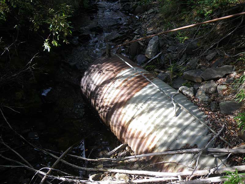ID: 1 Structure Type: Circular pipe (Structural steel plate) Fish Passage Rating: Red