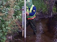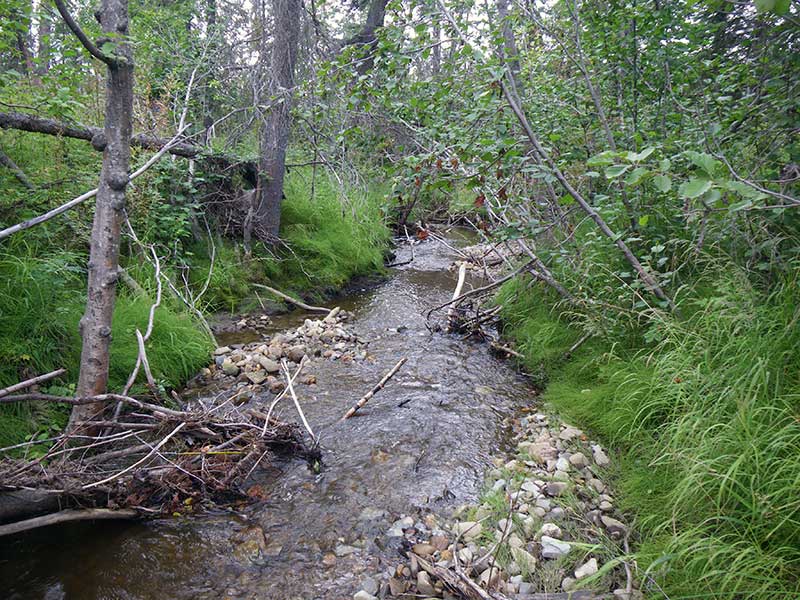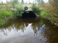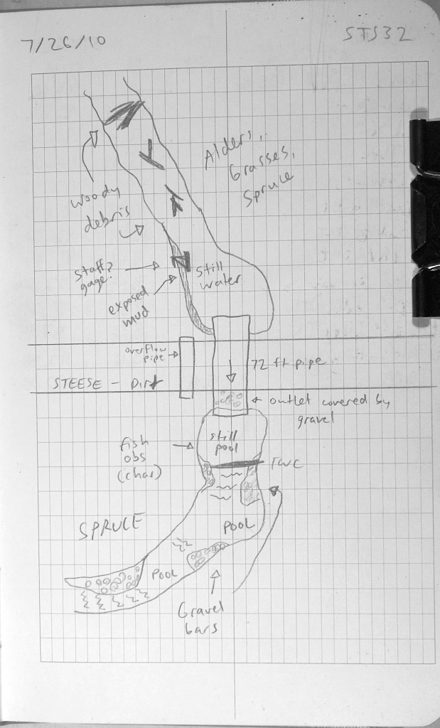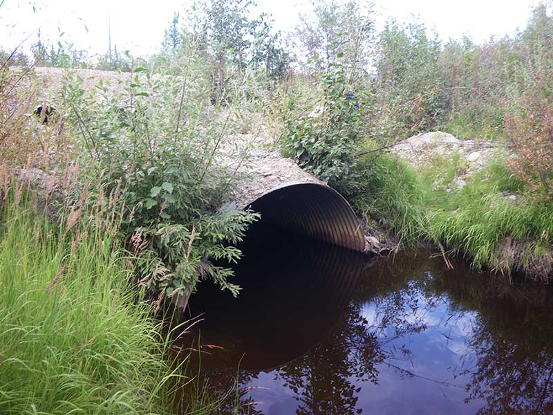 Comments: There appeared to be a staff gauge upstream from this culvert. The upstream is difficult and downstream widths were used. Arctic Char? were seen downstream.