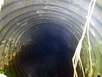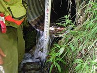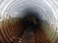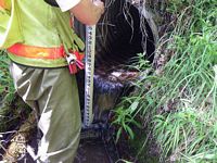 Comments: Max outlet pool depth 0.75'. Pipe appears to be rusted out water is leaking into pipe from surrounding surface. Part of inlet has broken and substrate is washing into pipe. Pipe length could not be measured and there was no DOT placard. 25 mile Elliott Hwy Pullout.