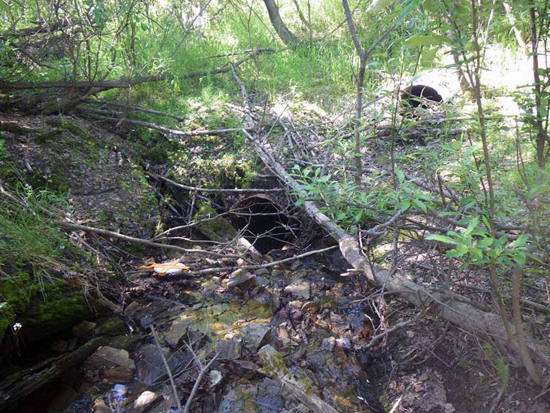 Comments: This pipe is rusted throughout. No minnow traps were set here because the water level was too low. There are the remains of an old bridge upstream from this culvert. The pipe gradient and the length could not be calculated because of ice blockage and a bend in the pipe but the pipe is red by the outfall height alone. The constriction ratio should be disregarded - there are big pools throughout and no real runs.