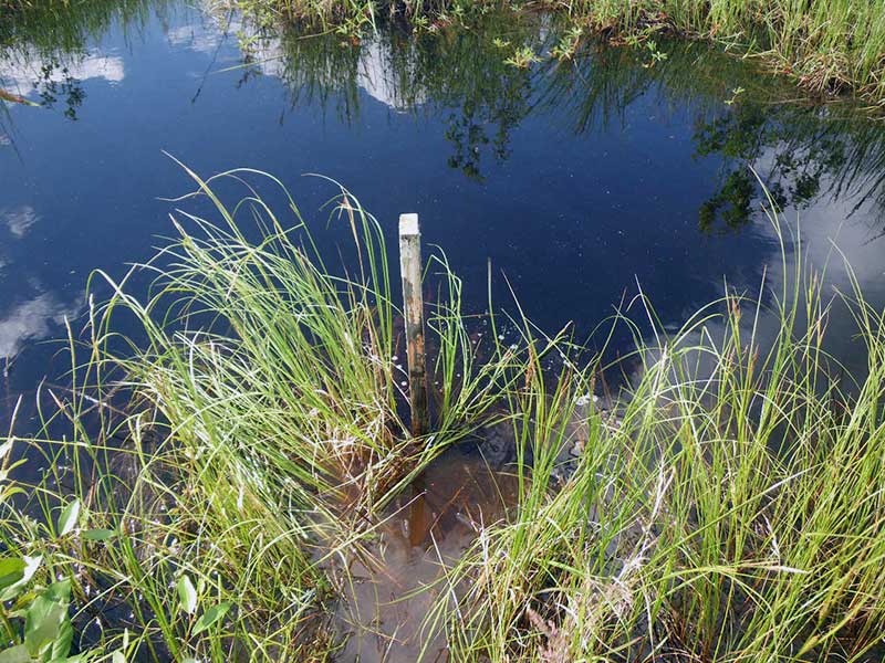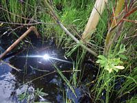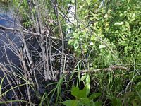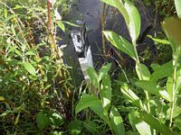Comments: There are 2 pipes here. C1 is submerged and C2 is as well. The water is murky, it was difficult to find the inlet and outlet and it could not be confirmed if there was an apron or not. C1 appears to be fully clogged at the outlet. There is a deep pool at the outlet of C1. No constriction ratio was calculated because this culvert connects a pond to another pond. Also, any other measurements or calculations that are not present are because the pipe was fully submerged and clogged with debris.
