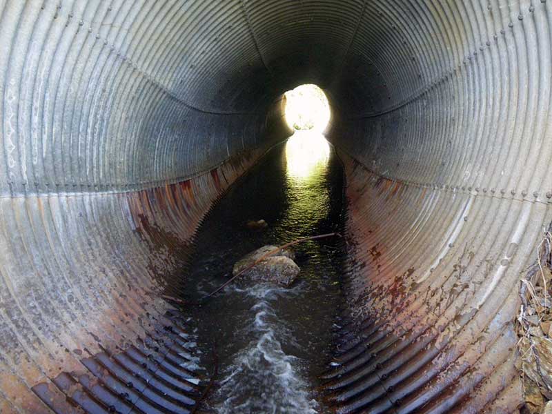 ID: 1 Structure Type: Circular pipe (Structural steel plate) Fish Passage Rating: Red