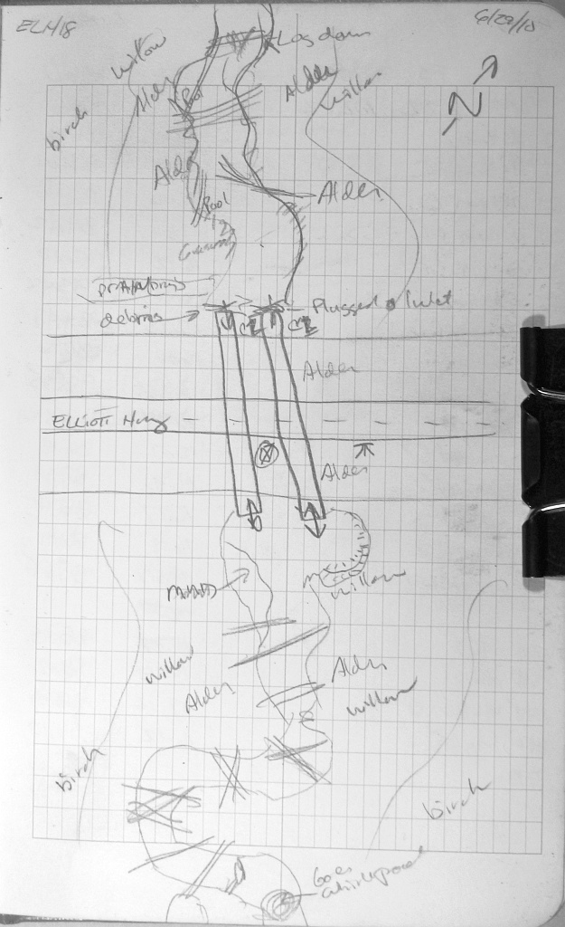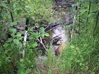 Comments: This culvert has 2 pipes. C1 is almost completely clogged with woody debris. C2 has a big inlet perch and is also heavily clogged with woody debris. The length of these pipes could not be shot with a laser so DOT placard lengths were used.