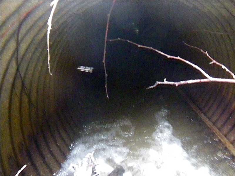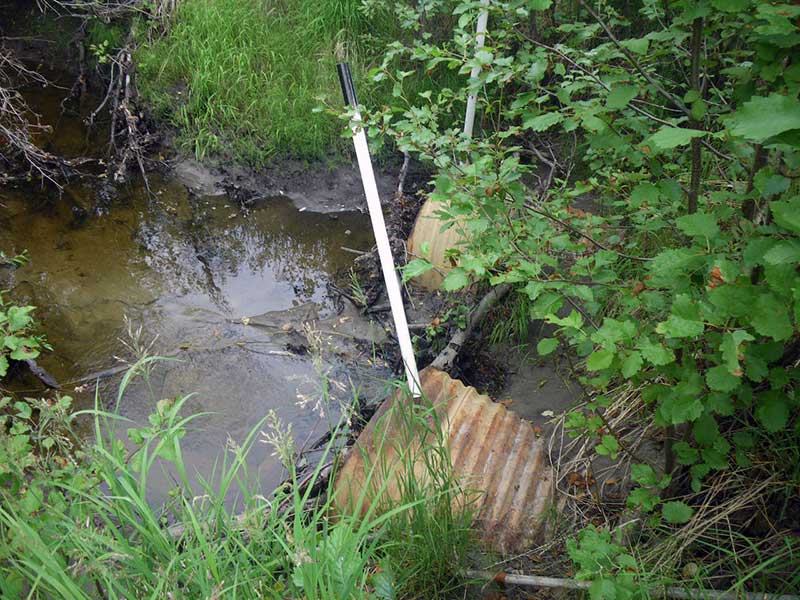 ID: 2 Structure Type: Circular pipe (Corrugated steel) Fish Passage Rating: Red
