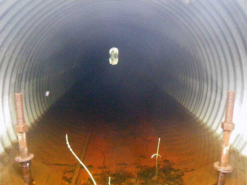 ID: 2 Structure Type: Circular pipe (Corrugated steel) Fish Passage Rating: Red