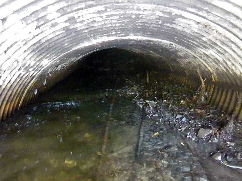 ID: 2 Structure Type: Circular pipe (Corrugated steel) Fish Passage Rating: Red