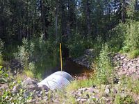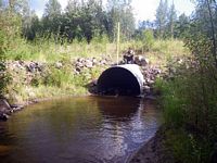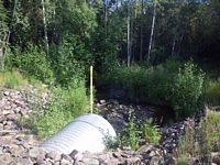 Comments: This culvert appears to be new and embedded. There is good habitat both upstream and downstream of this culvert. While surveying, an adult grayling was seen swimming upstream from downstream of the culvert.