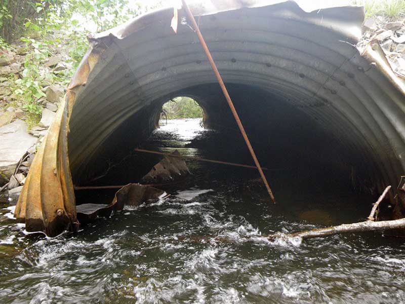 ID: 1 Structure Type: Circular pipe (Structural steel plate) Fish Passage Rating: Red