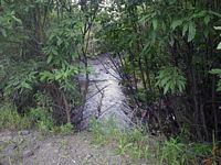 Comments: Both sides of the pipe are mitered. The inlet has been pushed severely in and is badly damaged. Channel appears to be a ditch both upstream and downstream.