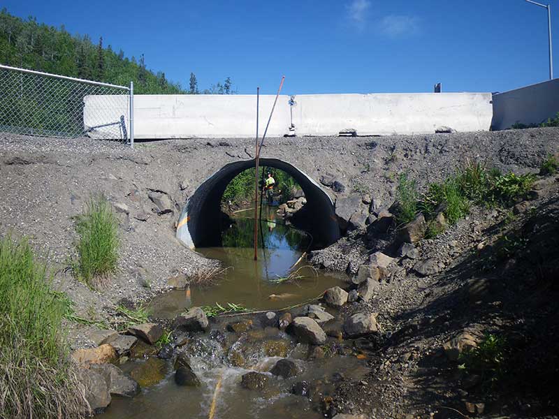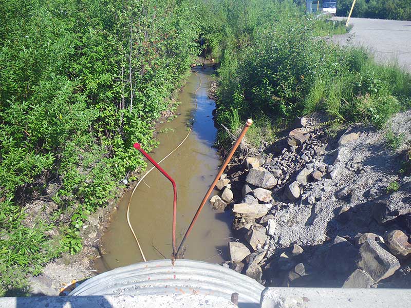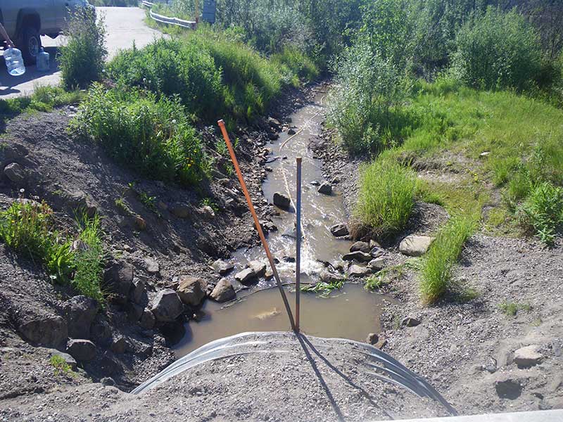 Site Comments: This is the crossing at the Fox Spring along the Elliott Hwy. Fox Creek is dammed downstream from this culvert 600-700' and there is a pond and water wheel.