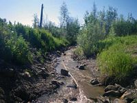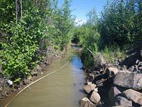 Comments: Fox Creek is dammed and there is a water wheel about 600-700' D/S. No minnow traps set due to shallow water. Channelized upstream and downstream. Rock TWC looks like it was put there. This is the crossing at the Fox Spring along the Elliott Hwy.