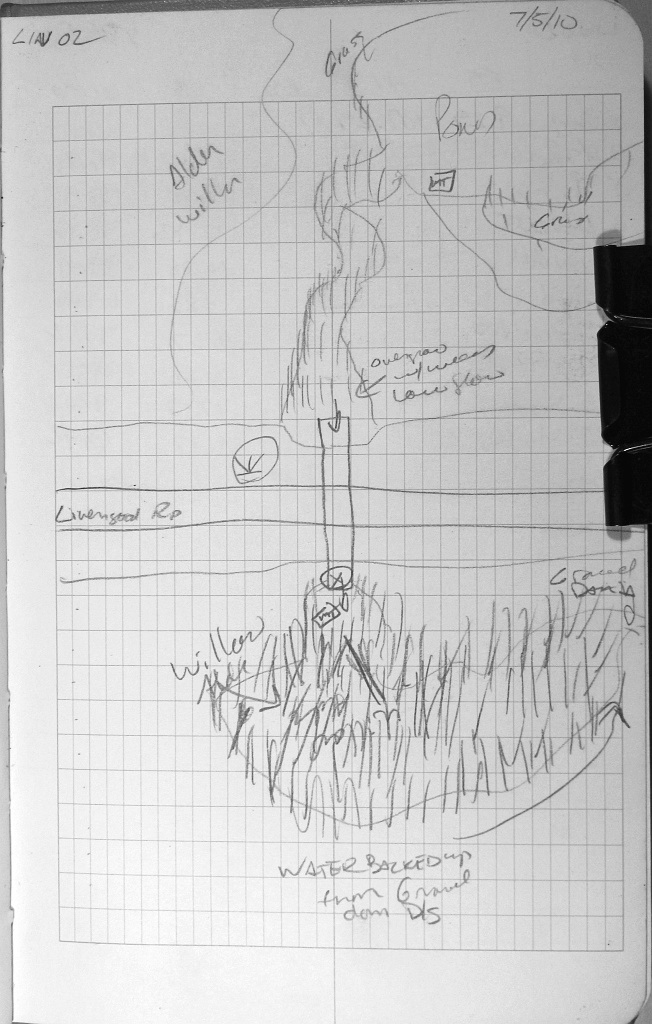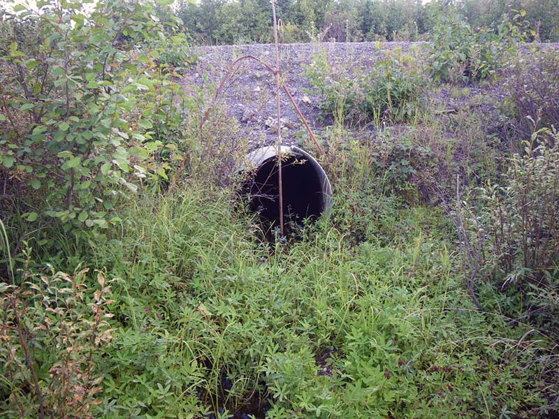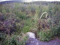 Comments: Outlet is severely bent and damaged. The inlet to this culvert is coming apart on top. No stream widths were taken here because this culvert connected one pond to another.