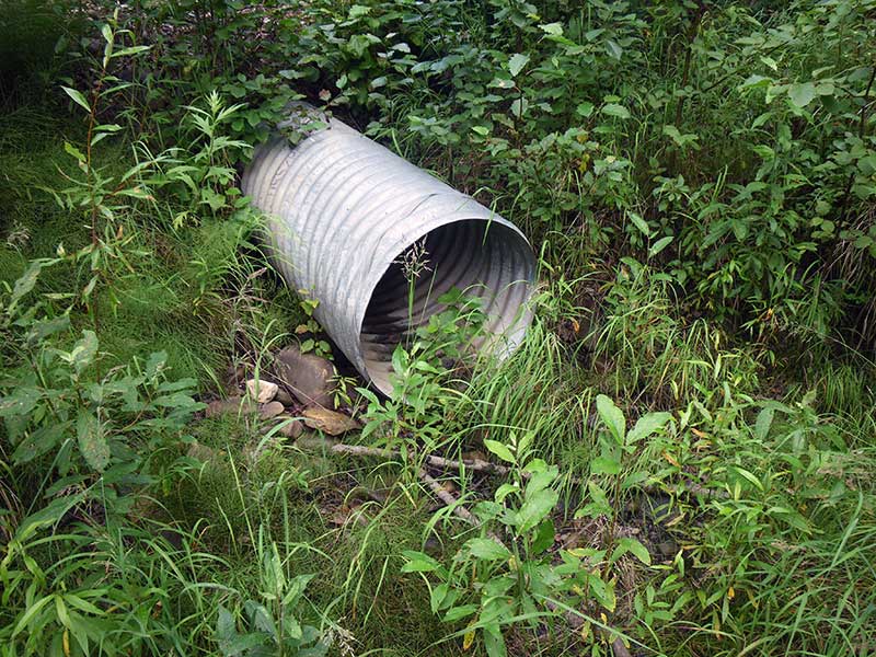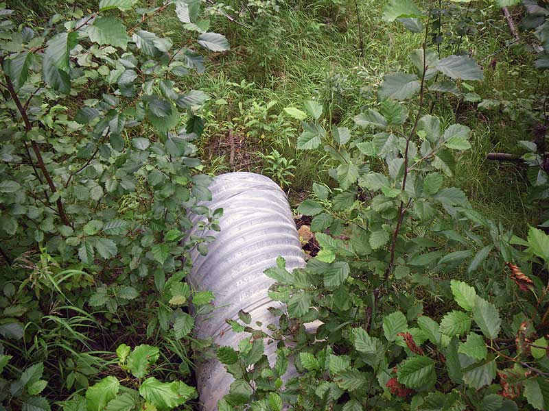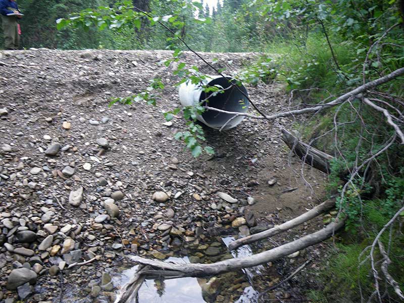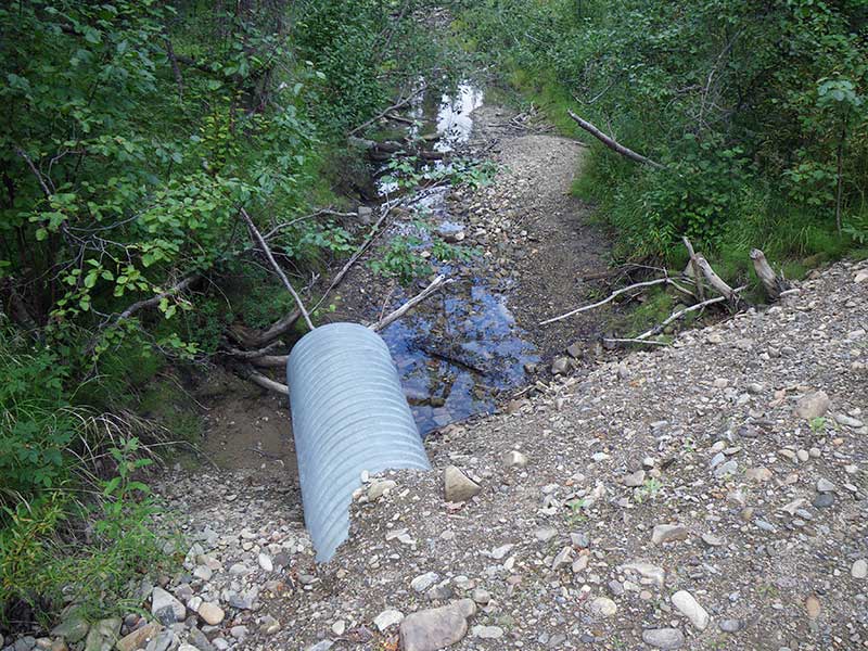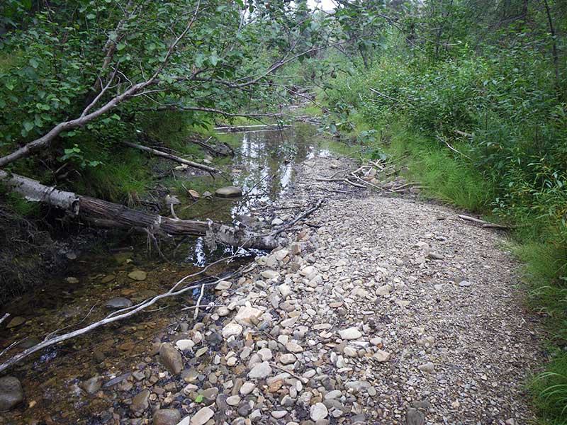 Comments: There is a pipe and a channel present, but there is no flow. The pipe is placed very high above the channel bed. There is potential habitat at this site and it could possibly be a slough of the Chatanika River.