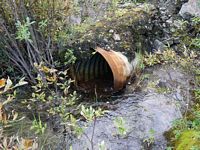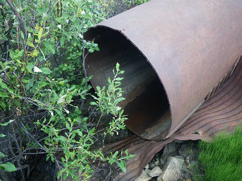 Comments: Abandoned culvert on washed out old roadbed. This culvert is an old piece of the Davison Ditch Pipeline & there is also a CSP overflow pipe. The culvert is not functioning at all. Water flows under the main pipe and through the overflow pipe. This site appears to be a good candidate for removal.