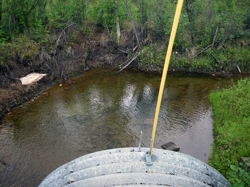 Comments: The creek upstream and downstream of this culvert appears to be channelized. There are nice pools and riffles throughout. There is a compound gradient in this pipe.