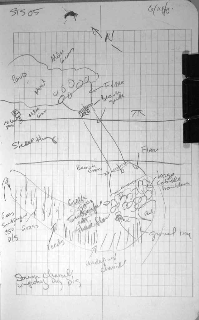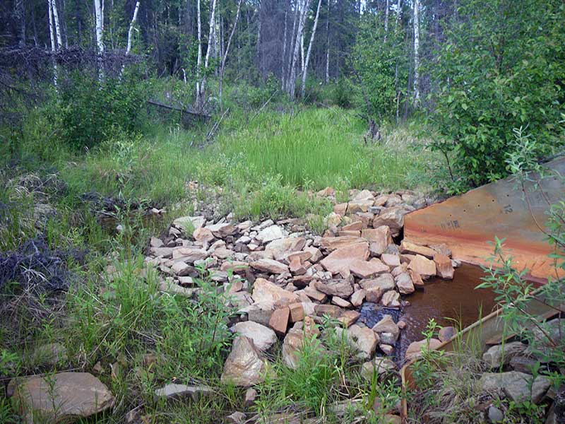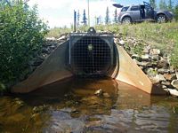 Comments: Beaver Gates on Inlet and Outlet. Ponds U/S and D/S. Grayling found dead lodged in invert pipe between pipe and flare. Dead but not decomposed, gills were pink and eyes clear. Most if not all substrate above and below culvert is road fill.