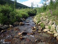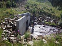 Comments: This pipe has very deep fill. Overflow pipe above main pipe. There is a compound gradient in the pipe but the pipe is too damaged to measure it. No longitudinal profile. No minnow traps were set out