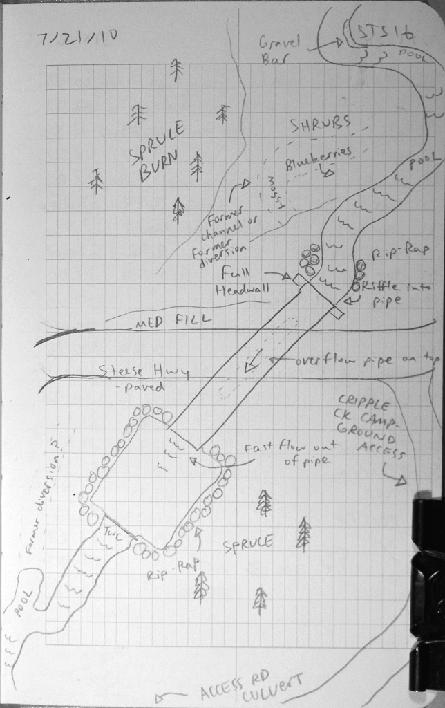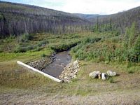 Comments: This culvert appears to be new and is in good shape. The height measurements, including rust line height, were taken from substrate and not from the bottom of pipe. One freshwater sculpin was caught downstream. It was 65mm in length.