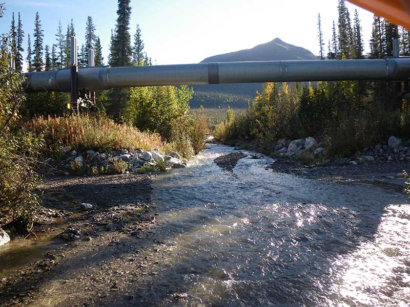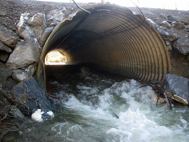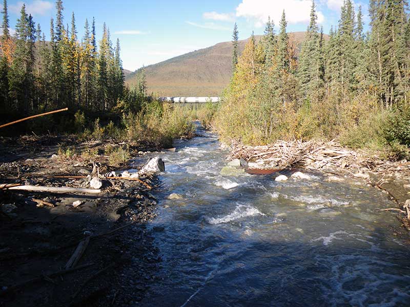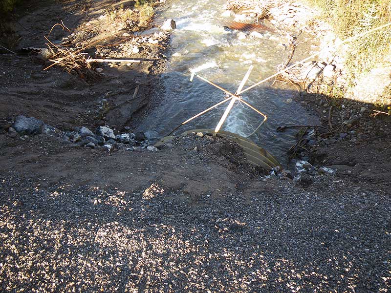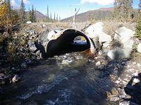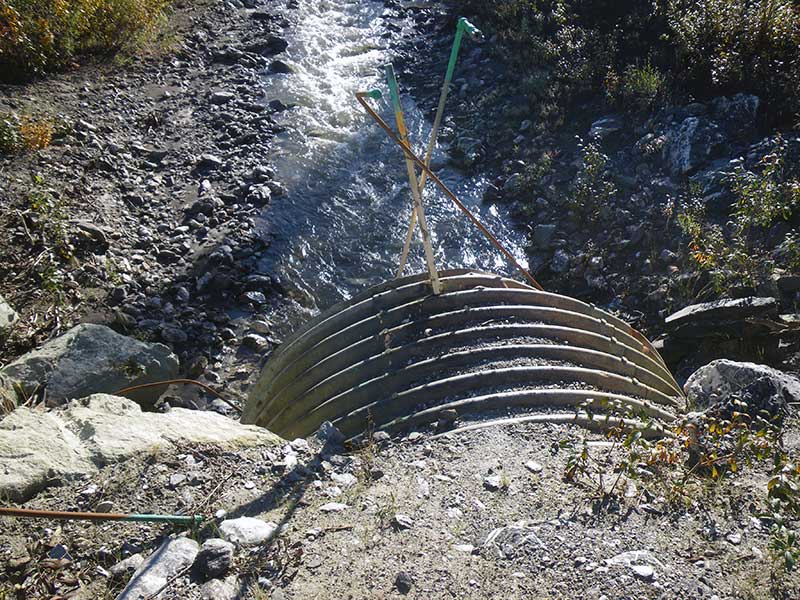 Comments: Outlet damaged and rip-rap collapsing into scour hole; lots of metal in stream @ outlet, maybe old sections of culvert; lower half culvert collapsing and steeper than overall gradient. Sculpin & grayling recorded in creek by TAPS.