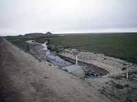 Comments: Many nine-spine sticklebacks seen upstream and downstream of this culvert. Concrete created channels at inlet and outlet. Approach angle too sharp.