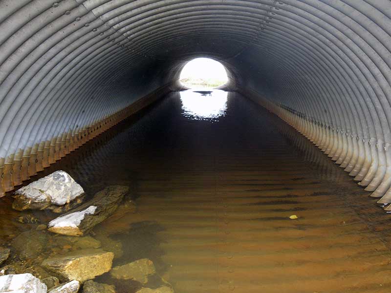 ID: 1 Structure Type: Pipe-arch (Structural steel plate) Fish Passage Rating: Red