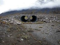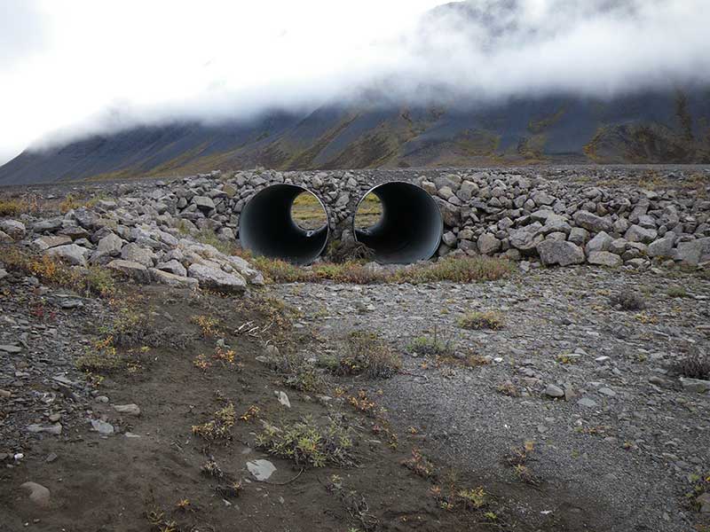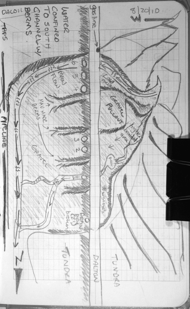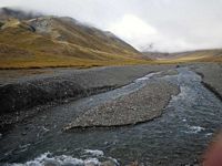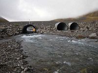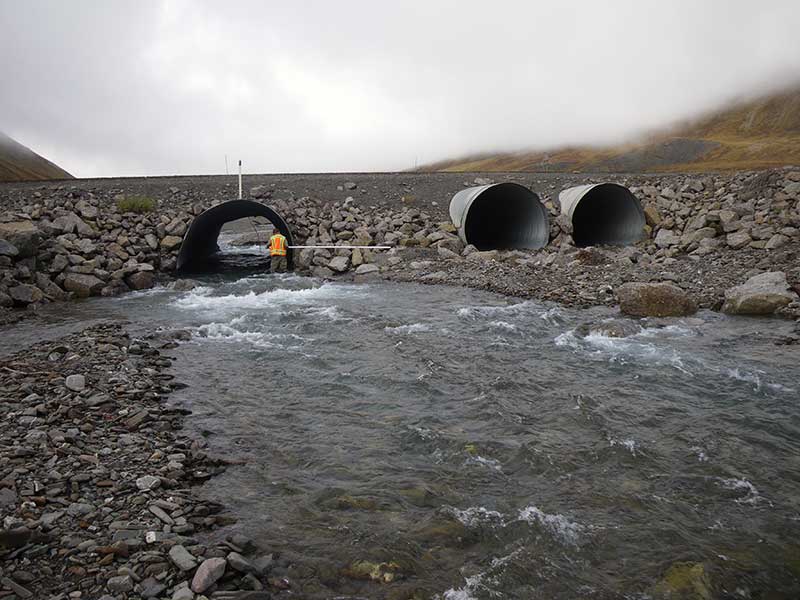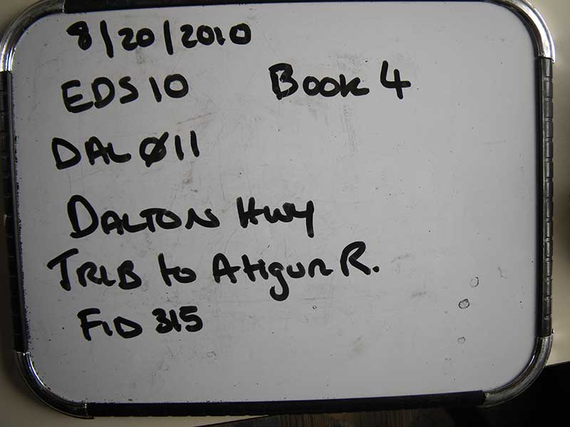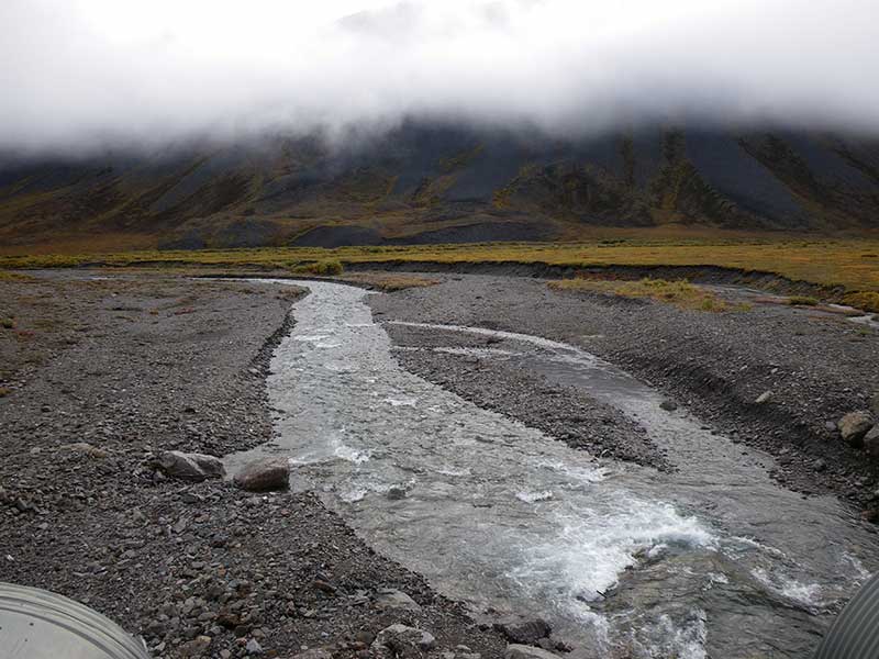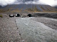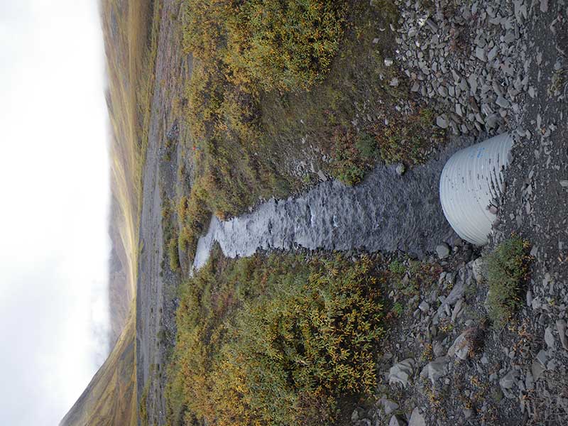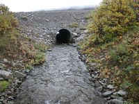 Comments: Trib to Atigun River. Braided channel no stream widths. several fish observed u/s and d/s of pipe 1; 2 grayling caught u/s of pipe 1 with hook and line