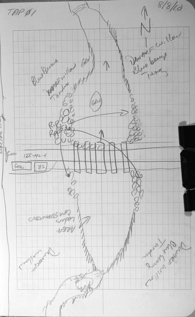 Comments: This culvert is composed of 5 pipes. C3 is in the middle and is set lower than the other 4 pipes. The stream channel has been modified both upstream and downstream of the culvert.